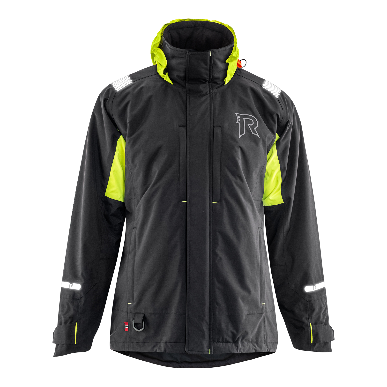 Fjord flytejakke har et yttermateriale med en vannsøyle på 10 000 mm, samt tapede sømmer. Den har refleksdetaljer, krage med fleece og justerbare ermer. Hetten kan også skjules i kragen.