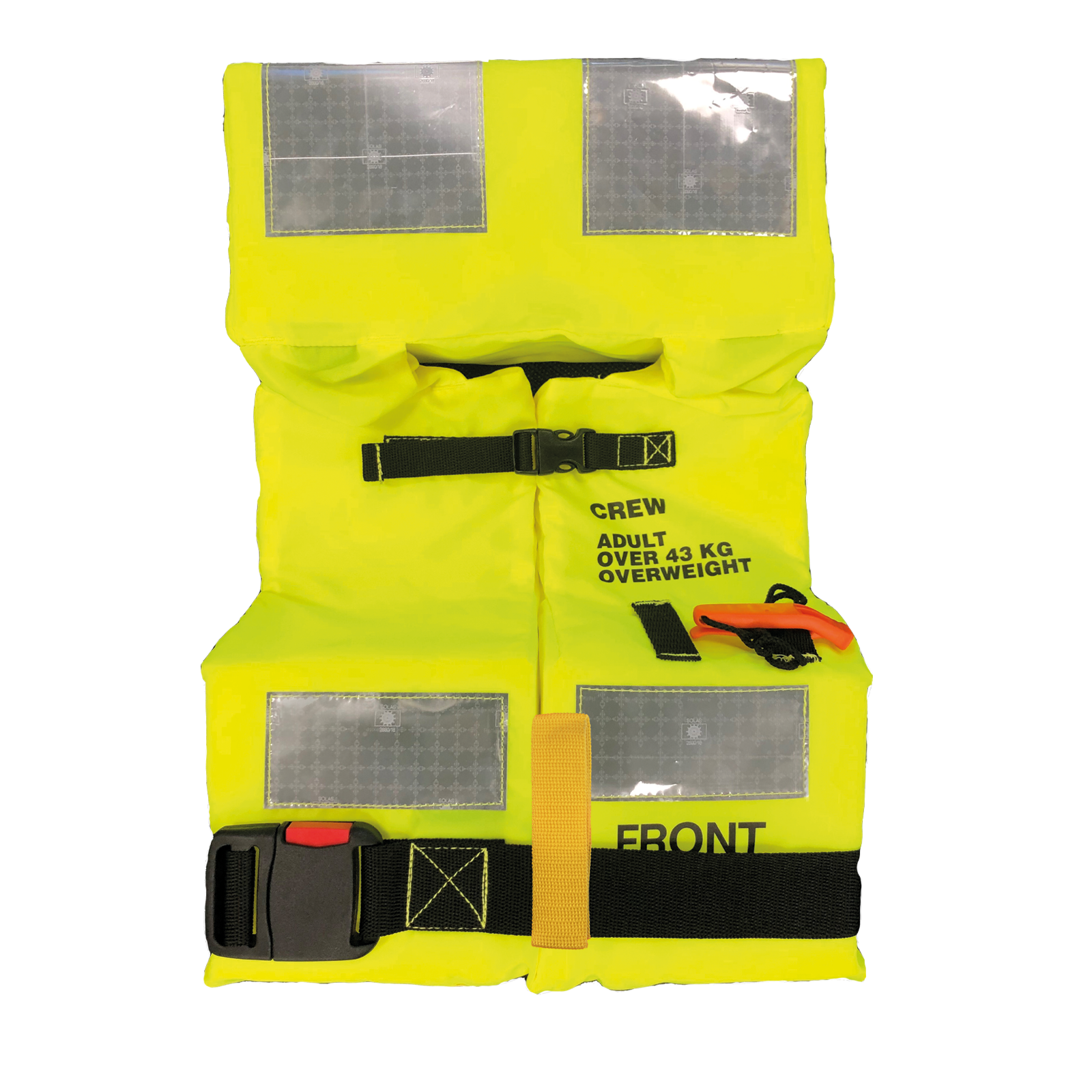 Denne redningsvesten finnes i størrelser fra baby til voksen, og kommer i fluoriserende gul til crew og oransje til passasjerer. Den har belte med kraftig plastspenne i front, en stabil krage og løftestropp og fløyte for varsling i en nødssituasjon.